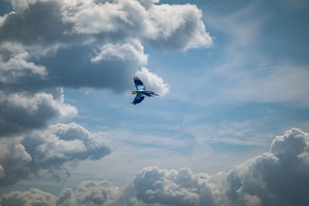 In einem bewusst kleinen und harmonischen Rahmen begleiten wir vier Aras im Freiflug und fotografieren im zweiten Teil zwei kameraerfahrene, nicht professionelle menschliche Models gemeinsam mit den Aras.